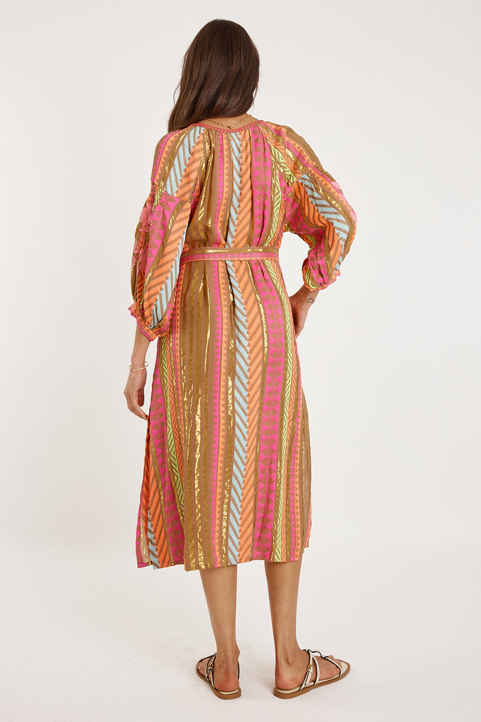 Elevate your wardrobe with the Rubyyaya Toulon Dress, a modern take on effortless elegance. Crafted from 100% viscose jacquard fabric with subtle lurex highlights, this dress brings shimmer to your everyday look. The intricately embroidered bodice and sleeves add a touch of sophistication, while the relaxed fit and side pockets ensure comfort without compromising style. Complete your look with the optional self-tie belt for a versatile silhouette. Designed in Australia, this dress blends contemporary fashion with timeless details.