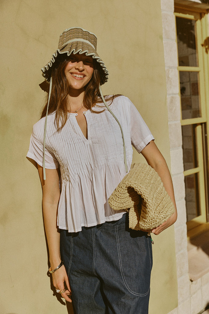 Elevate your everyday wardrobe with the Rubyyaya Vivan Top, a timeless piece that blends effortless style with ultimate comfort. Crafted from 100% breathable cotton, this Australian-designed women’s blouse features a round neck with a button-through V neckline, adding a touch of relaxed elegance to your look. The pleated bodice creates a flattering silhouette, while the short sleeves and waist-length fit make it perfect for both warm days and easy layering.