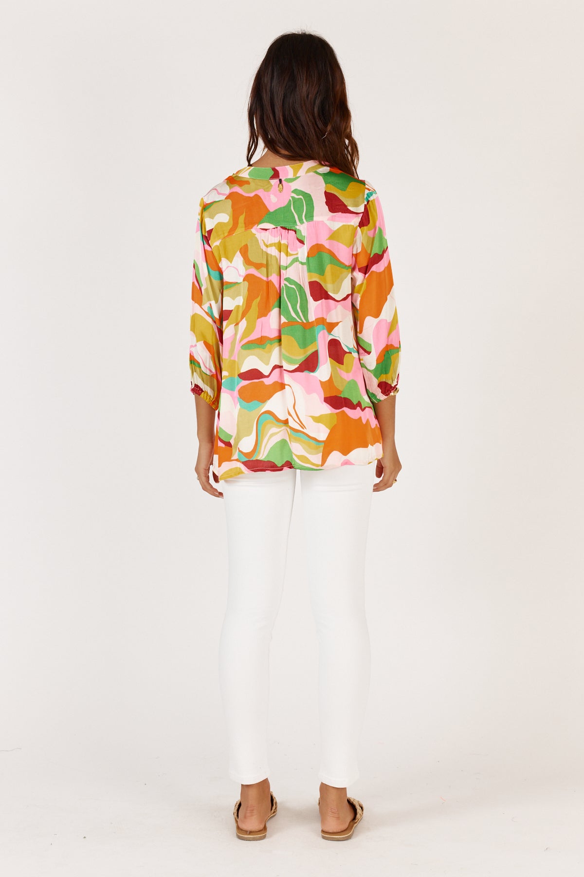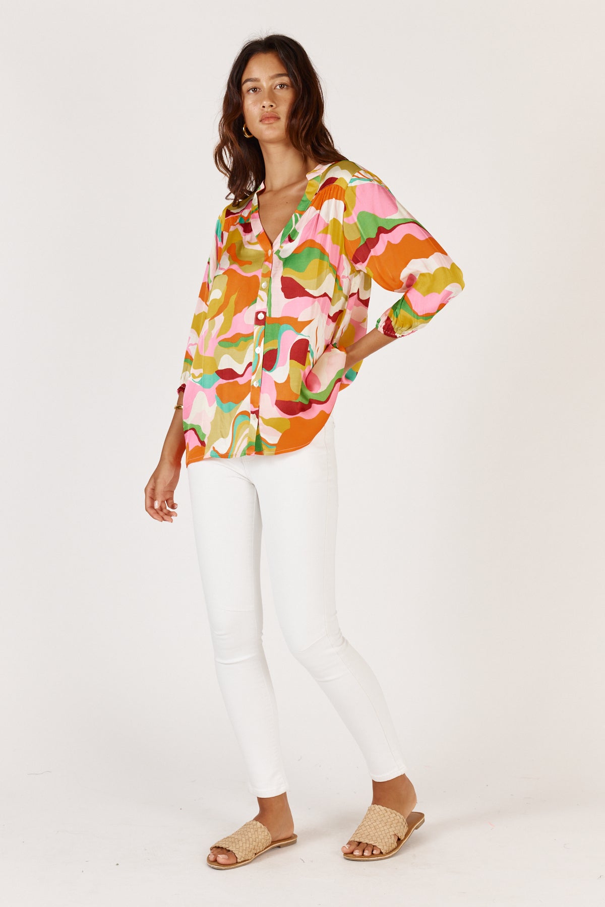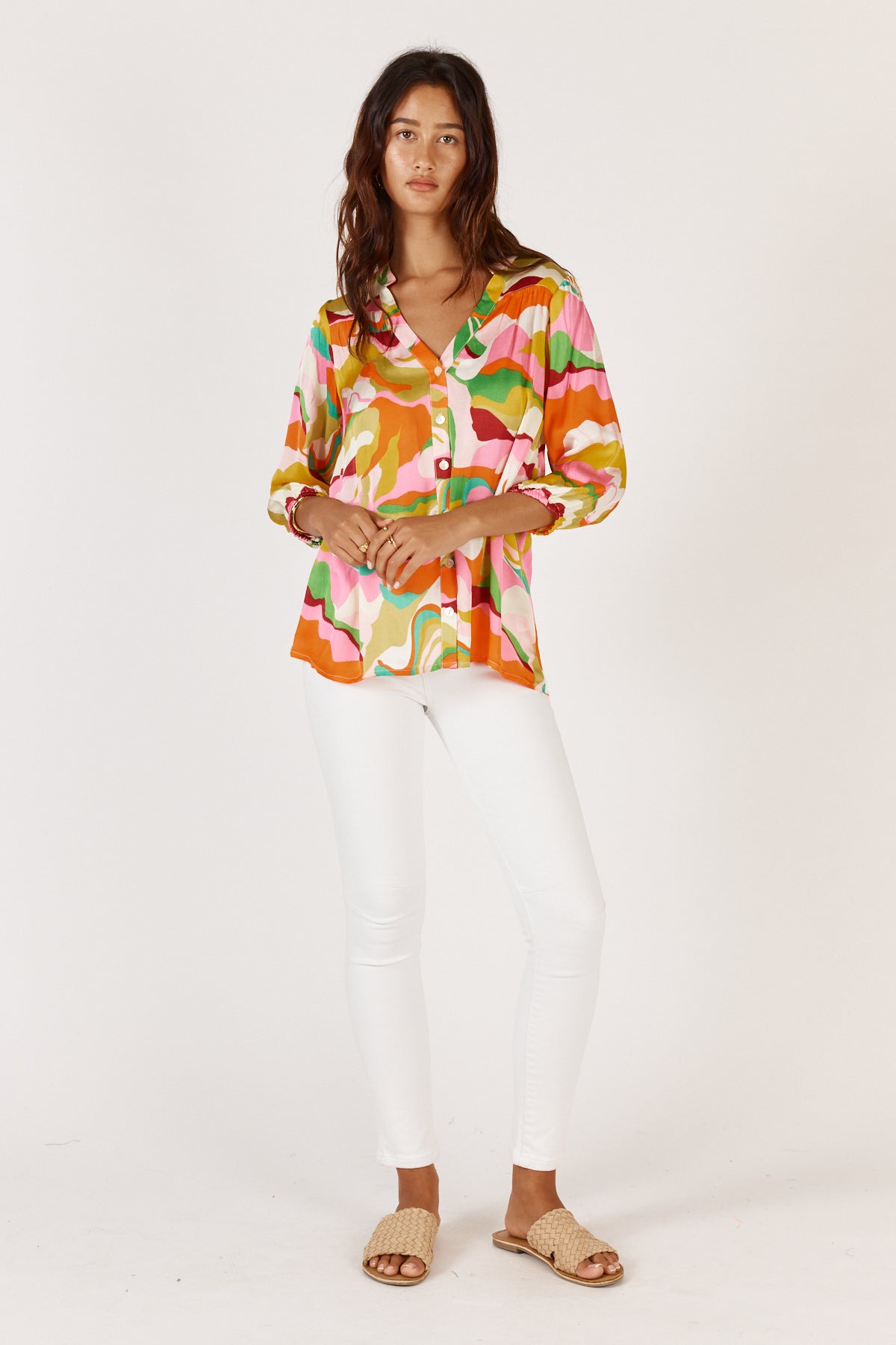 Effortlessly elegant, the Rubyyaya Wild Safari Shirt brings a touch of timeless style to your wardrobe. Featuring a flattering mandarin collar with a v neckline, this tunic-style shirt has a button-up front and relaxed fit, offering all-day comfort and chic versatility. Crafted from 100% viscose satin, it drapes beautifully while feeling soft on the skin. The Wild Safari Shirt includes full-length sleeves with elasticated cuffs, allowing you to style it rolled up or down. Pair it with your favourite jeans for a relaxed look or dress it up with tailored pants for a refined ensemble.